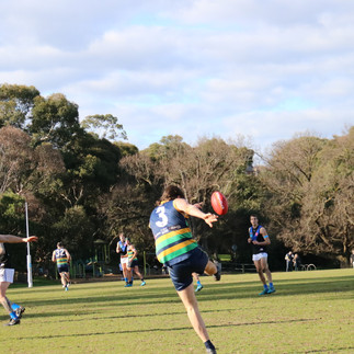 It had been more than a month since the Seniors had set foot on TH king in a competition game, but they looked right at home as they played out an even first half against the team placed second on the ladder. After a half time reset they came out all guns blazing in the third booting 5 goals to one and setting up a solid lead to take into the orange break. But Uni Blues are a stoic outfit and were able to inch their way back into the contest. By the 27 minute mark the lead was 10 points but after a mark and goal to Blues it was under a goal with about 3 minutes remaining. Some desperate defense chewed up the clock but in the shadow of full time SKOB were unable to clear the ball after a free kick and in the ensuing scramble, Blues managed to squeeze in a goal to claim the lead. From the bounce SKOB surged forward and had one last kick to the goal square that was cleared by the Blues as the siren rang. A win would have put a three game cushion between SKOB in the four and the chasing pack, but alas they suffered a second nail biting loss to the Blues. The games between the two teams this season have been decided by a combined total of less than a goal but the raw numbers show two wins to the Blues. For SKOB the better players were Alastair Richards, Callum Matheson, Sam Cameron, William Coates, Jack Holden and Ben Mansfield who booted three goals. They now hit the road for a fortnight of away fixtures before finishing with the last three games at home - which will help - but there is still a bit to do if SKOB are to make it to the pointy end of the season.