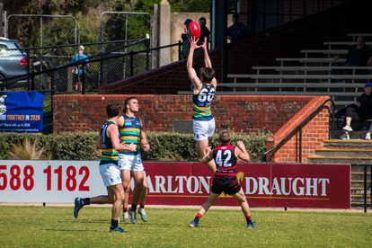 The second term began with both teams really turning up the heat with their tackling pressure and attack on the footy. It quickly became your typical fierce finals footy, exactly what you'd expect from the top two teams in the division. Midway through the quarter, the game started to open up, with both teams having even scoring shots. Yet the SKOB's boys were more clinical in front of goal, which held them in good stead, maintaining a four-point lead heading into the main break.
