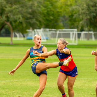 The injury hit Saints Gold stood up to a mighty challenge from the Roys at Rigret. With a number of players coming in to the team, Coach Tommy's chargers had no Easter hangover, as the newcomers slotted nicely into the system that Tommy has developed over many a season at Rigret. Setting the pace early, the Saints always had the game firmly in their grasp. Although missing regular sharp shooting partner Kate Stanton, Hannah Smith was happy to take the extra responsibility, booting 80% of the team's score, including a couple of goals in the third term to give SKOB a break they would not relinquish. Elysia Burvill has graduated to the Saints Gold team in 2025 and is playing some great football. The Saints kept their spot atop the Premier ladder as they set the early pace in the comp.